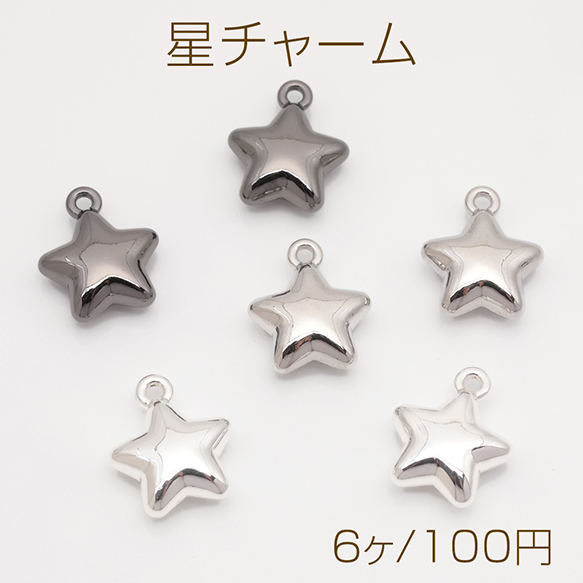 星チャーム メタリック 星 スター 可愛い 立体 宇宙チャーム メタルチャーム 約12×14mm(6ヶ)