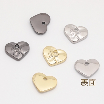メタルプレートチャーム ハート リボン模様 穴あき メタルチャーム 約10×12mm(6ヶ)
