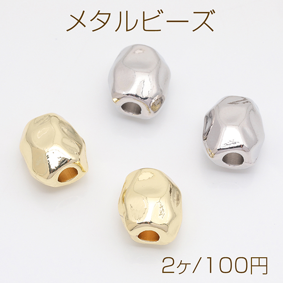 メタルビーズ 穴大きめ 不規則オーバル ビーズスペーサー 基礎金具 メタルパーツ 約11×13mm(2ヶ)