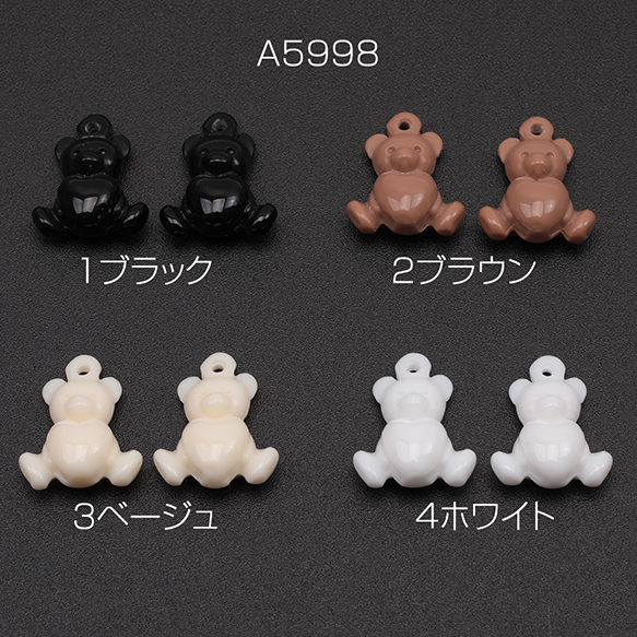樹脂チャーム くま クマ 熊 テディベア ハート 動物 アニマル くまチャーム 約12×15mm(6ヶ)