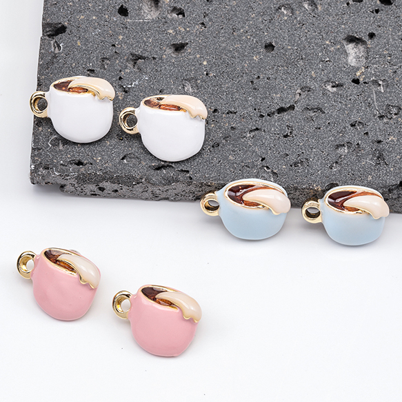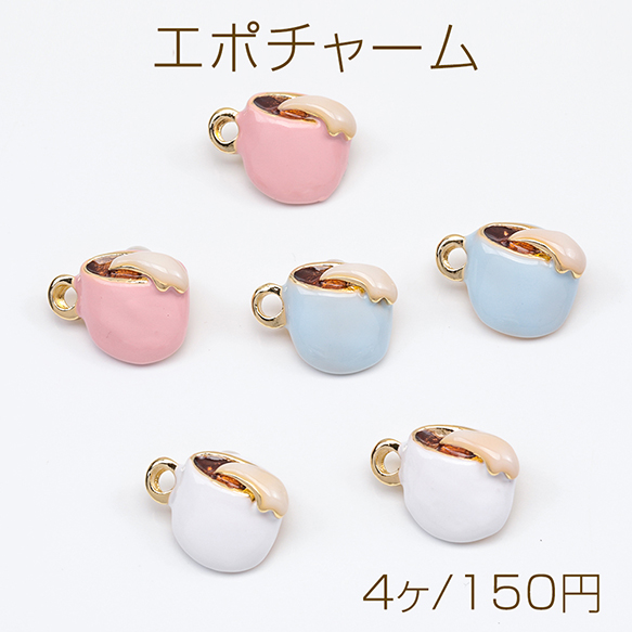 エポチャーム コーヒー カップ カフェオレ 飲み物 半面 メタルチャーム 約14×18mm(4ヶ)