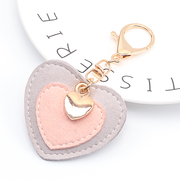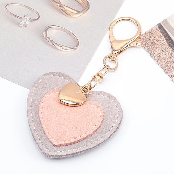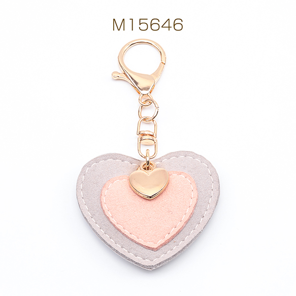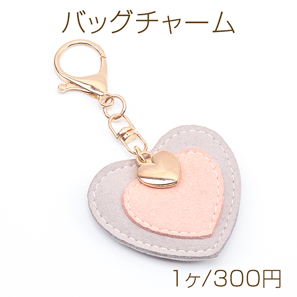 バッグチャーム ハート型 フェイクレザー ミニハートメタルチャーム付き キーホルダー 約6×11cm(1ヶ)
