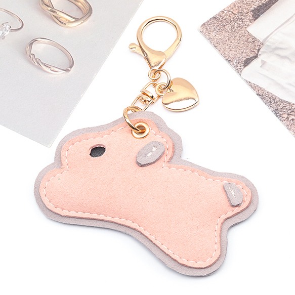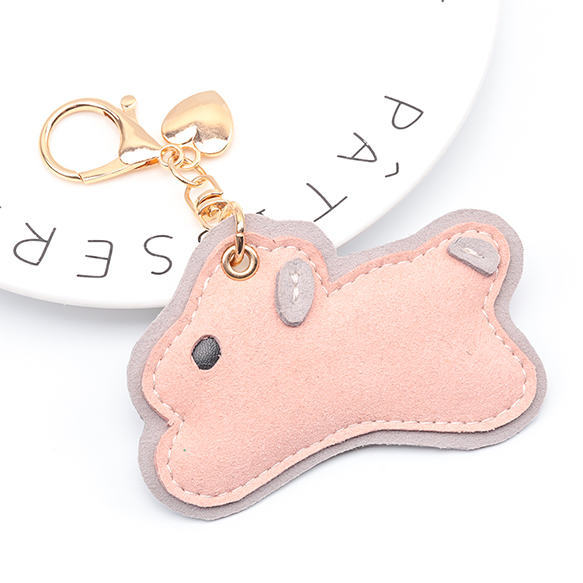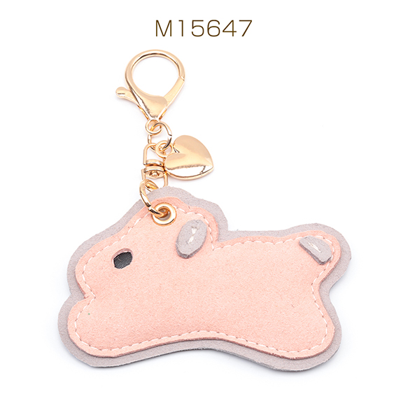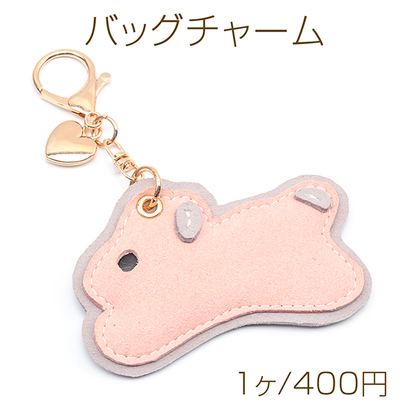 バッグチャーム うさぎ型 フェイクレザー ミニハートメタルチャーム付き キーホルダー 約9×12cm(1ヶ)