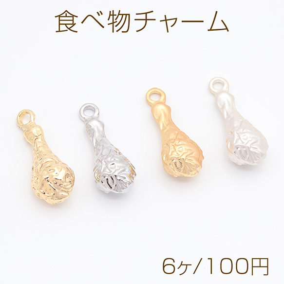 食べ物チャーム チキン グリル フライドチキン ミニチュア メタルチャーム 約7×18mm(6ヶ)