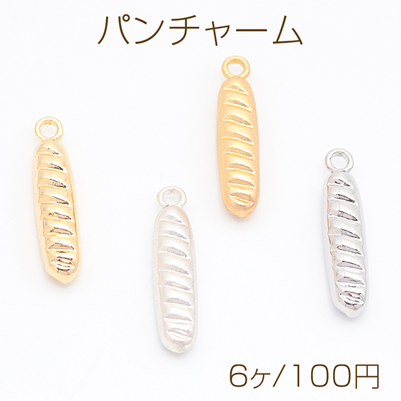 パンチャーム バゲット 食べ物 ミニチュア メタルチャーム 約5×22mm(6ヶ)