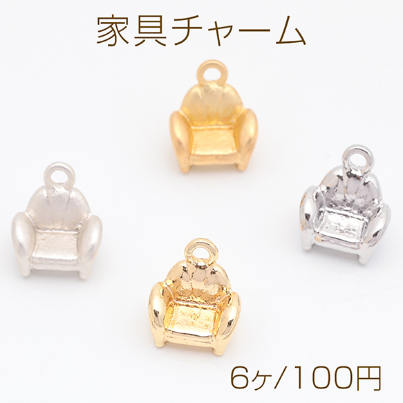 家具チャーム 一人掛け ソファ 椅子 チェア ミニチュア メタルチャーム 約9×10mm(6ヶ)