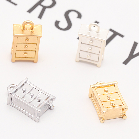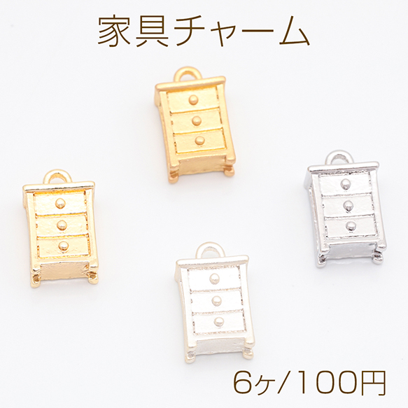 家具チャーム キャビネット タンス 三段ボックス 棚 ミニチュア メタルチャーム 約7×13mm(6ヶ)