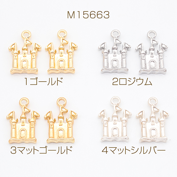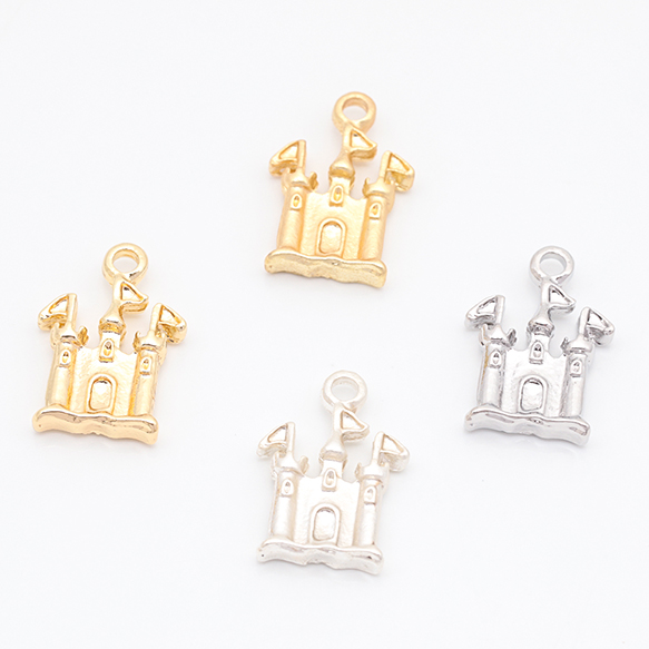 お城チャーム 王城 キャッスル 洋風 建物 旗付き メタルチャーム 約10×15mm(6ヶ)