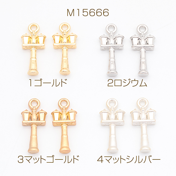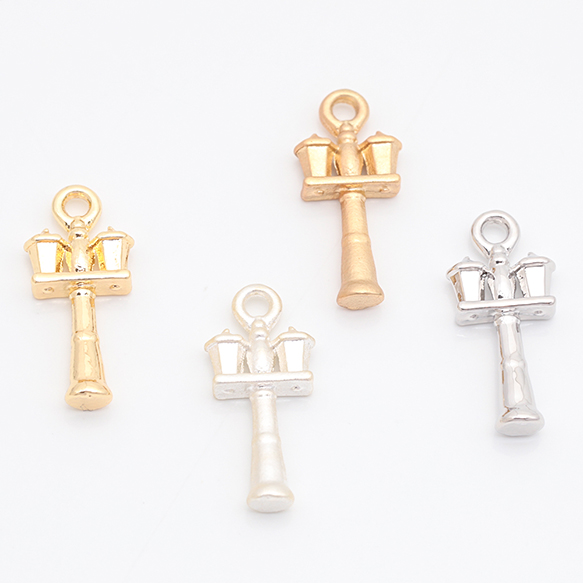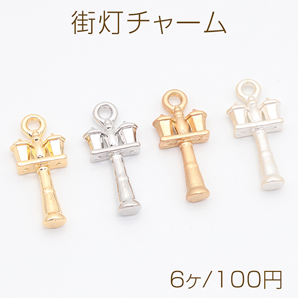 街灯チャーム ダブルライト 電灯 洋風 ミニチュア メタルチャーム 約7×16mm(6ヶ)