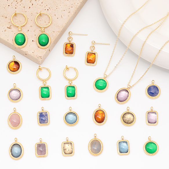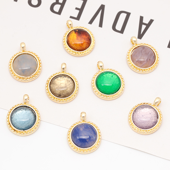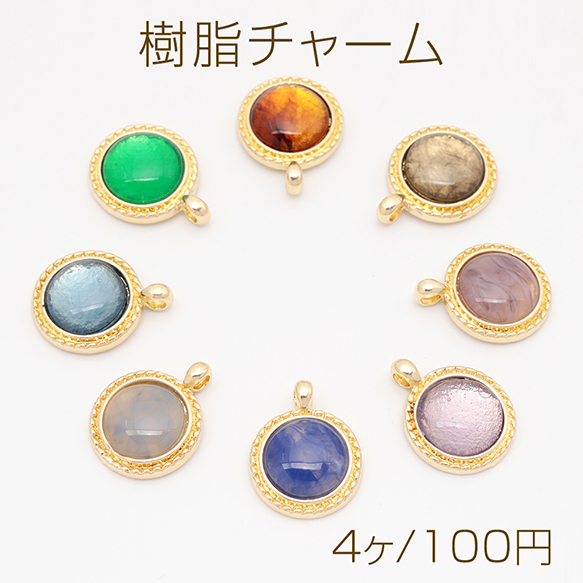 樹脂チャーム サークル 円形 マーブルカラー カラフル メタルチャーム 約11×15mm(4ヶ)