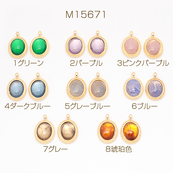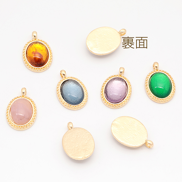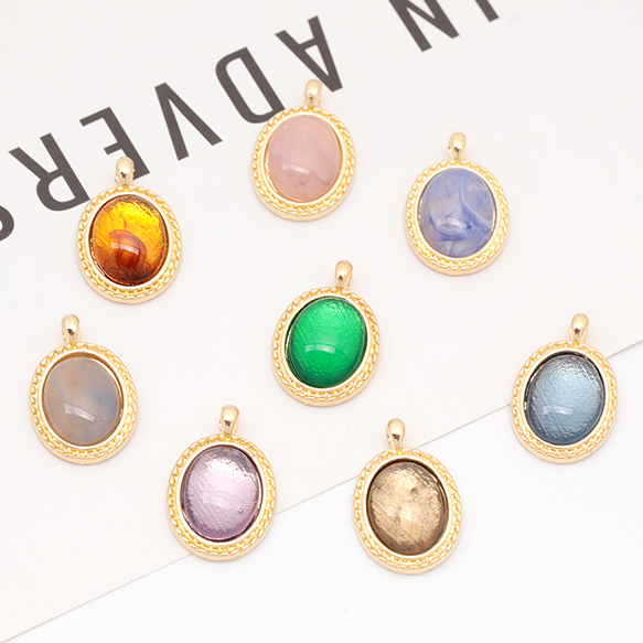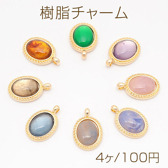 樹脂チャーム オーバル 楕円形 マーブルカラー カラフル メタルチャーム 約11×17mm(4ヶ)