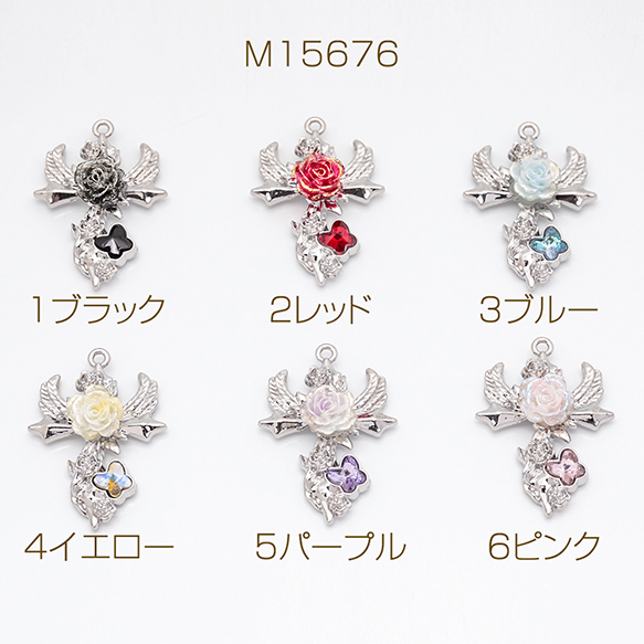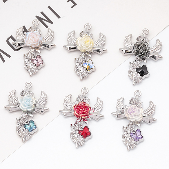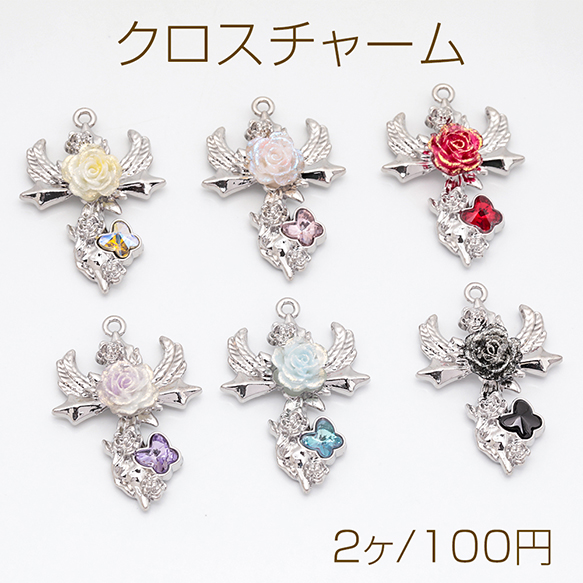 クロスチャーム 薔薇と翼 ローズ・蝶々付き スイートクール メタルチャーム 約23×32mm(2ヶ)