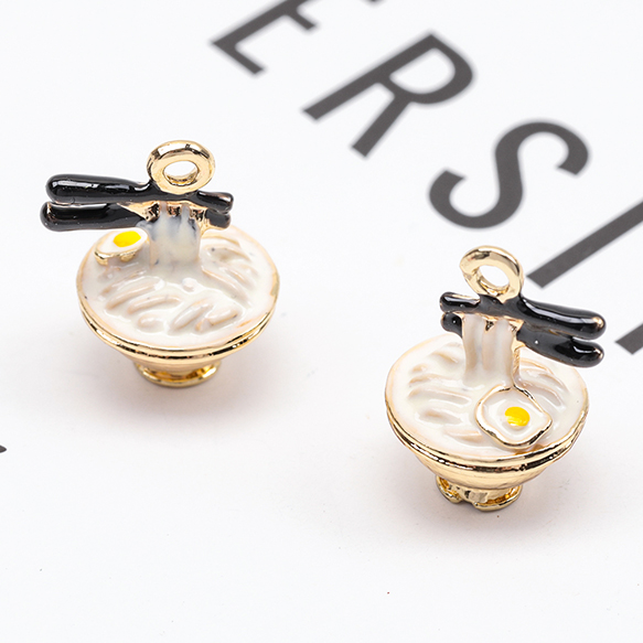 エポチャーム ラーメン 拉麺 どんぶり 立体 ミニチュア メタルチャーム 約10×15mm(2ヶ)