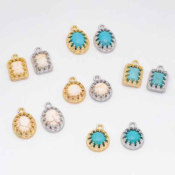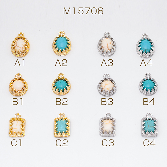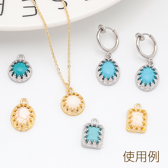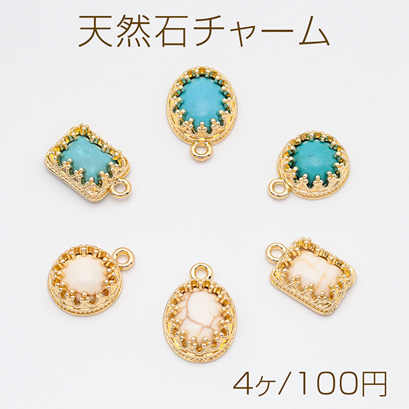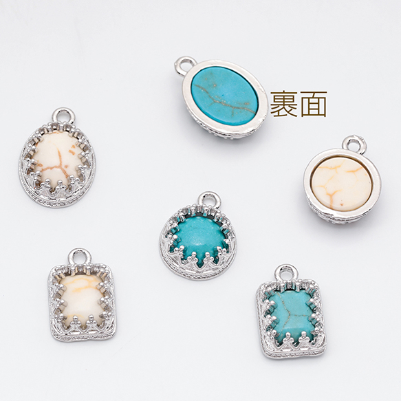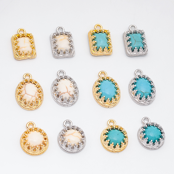 天然石チャーム ターコイズ オーバル ラウンド スクエア メタルチャーム 全12種(4ヶ)