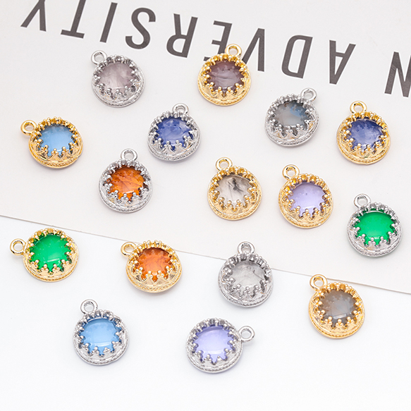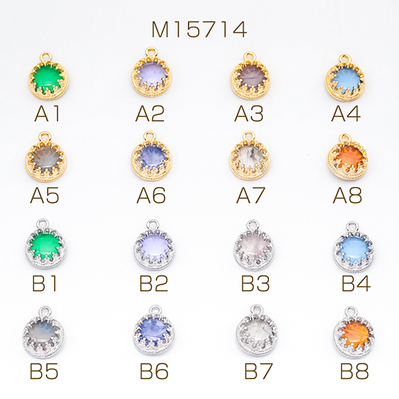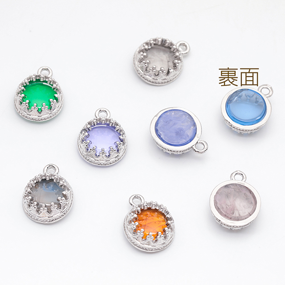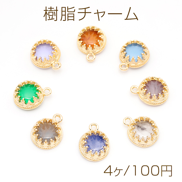 樹脂チャーム ラウンド サークル 円形 マーブルカラー カラフル メタルチャーム 約10×13mm(4ヶ)