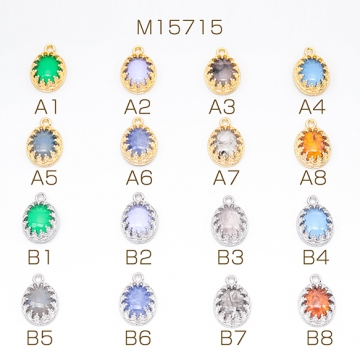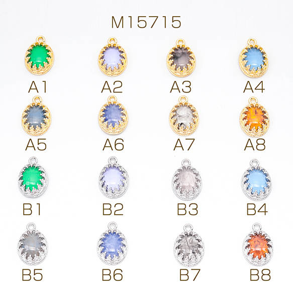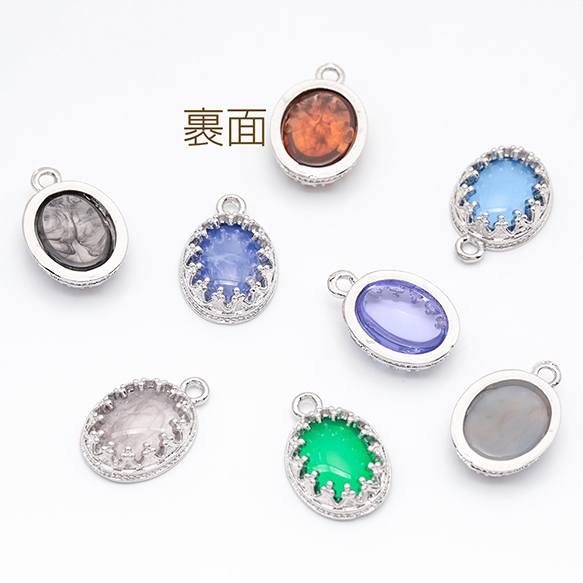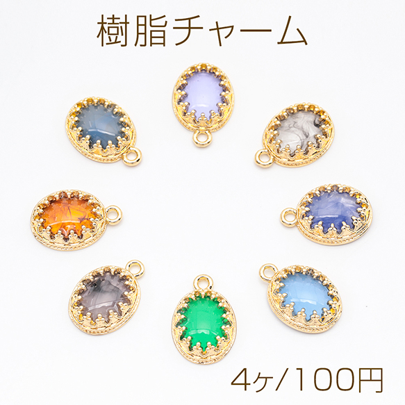 樹脂チャーム オーバル 楕円形 マーブルカラー カラフル メタルチャーム 約10×15mm(4ヶ)