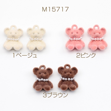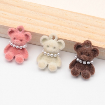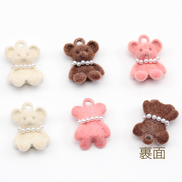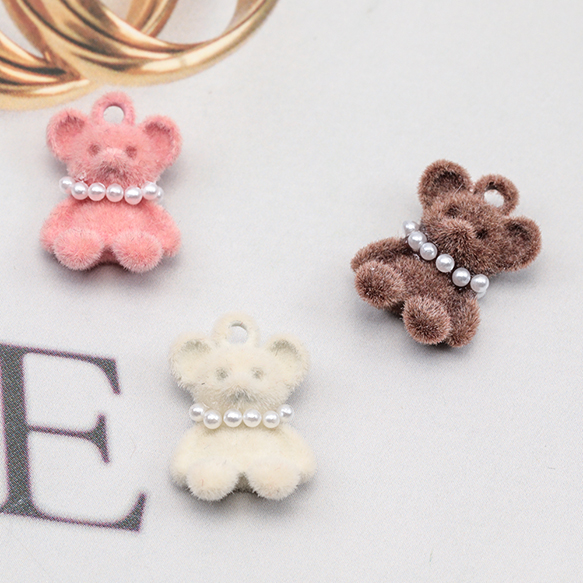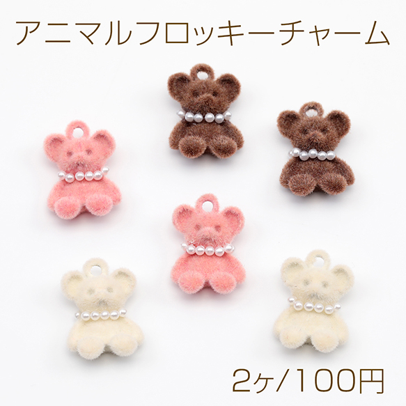アニマルフロッキーチャーム ネックレス付き クマ くま テディベア 熊 くまチャーム 樹脂チャーム 約11×16mm(2ヶ)