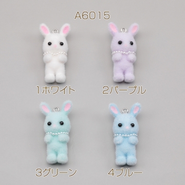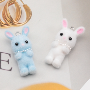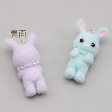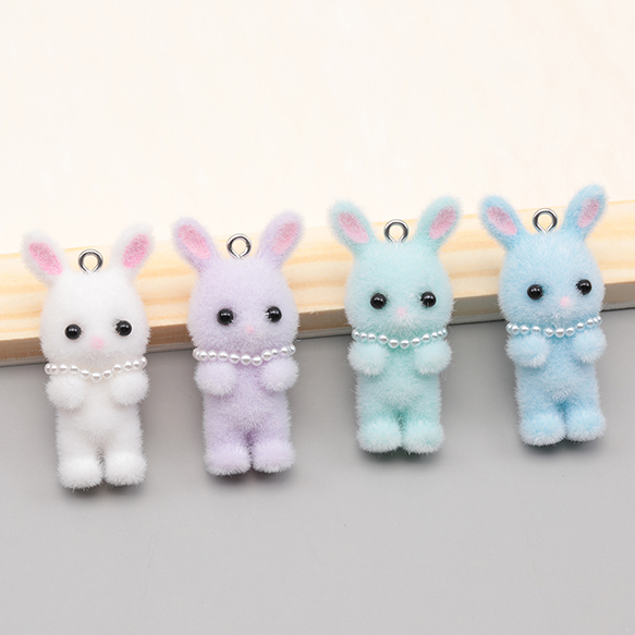 アニマルフロッキーチャーム ネックレス付き うさぎ ウサギ 兎 うさぎチャーム 樹脂チャーム 約20×39mm(1ヶ)