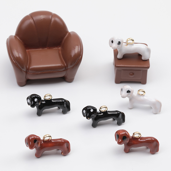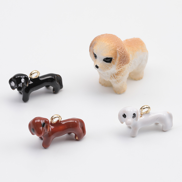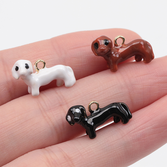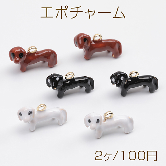 エポチャーム ダックスフント いぬ ドッグ アニマルチャーム 立体犬チャーム 犬パーツ 1カン 約11×18mm (2ヶ)