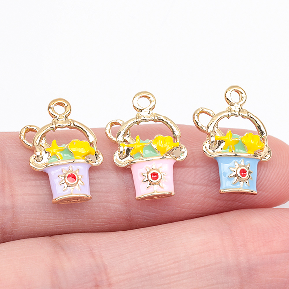 エポチャーム フラワーバスケットモチーフ 花チャーム フラワーチャーム 1カン 約10×15mm (2ヶ)
