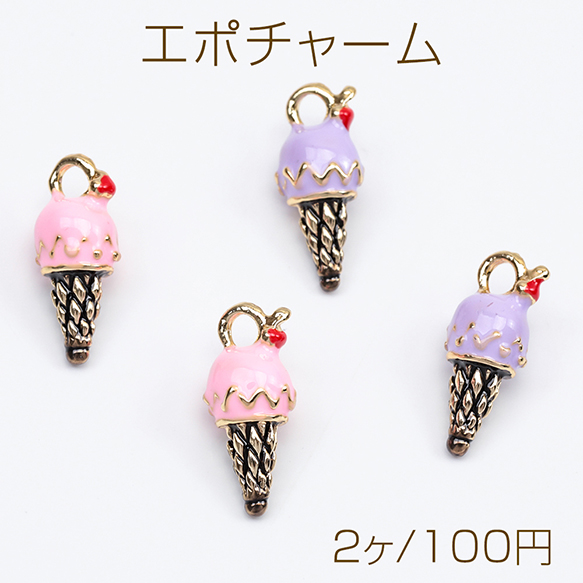 エポチャーム ソフトクリームモチーフ アイスクリームチャーム スイーツチャーム 1カン 約6×14mm (2ヶ)