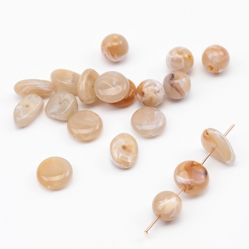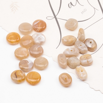 アクリルビーズ 大理石風 丸玉/不規則/フラット マーブルカラー ブラウン系 全3種(30ヶ)