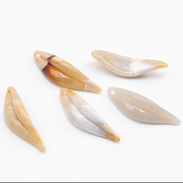 アクリルビーズ 大理石風 リーフ型 マーブルカラー ブラウン系 約12.5×38.5mm(10ヶ)