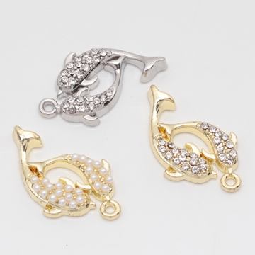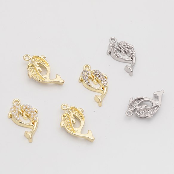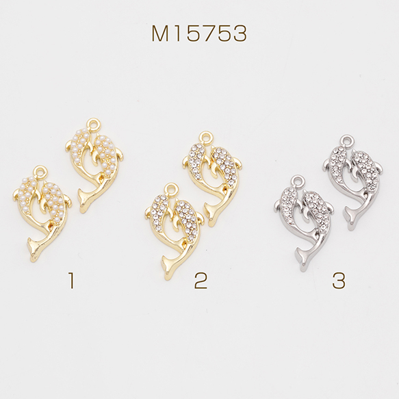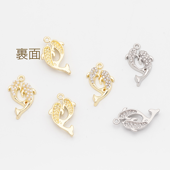 マリンチャーム さかな イルカ 海 生き物 パール/ストーン付き 半面 メタルチャーム 約13×22mm(2ヶ)