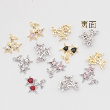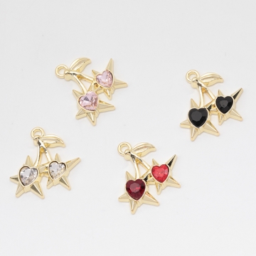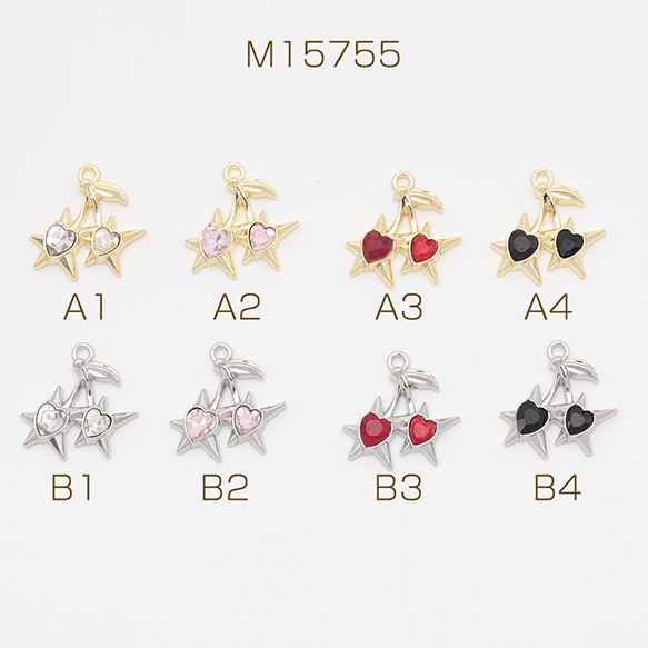 ハートチャーム さくらんぼ カラフル ストーン付き 半面 メタルチャーム 約19×19.5mm(2ヶ)