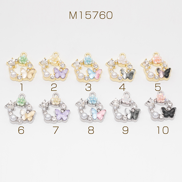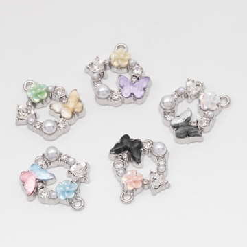 フラワーチャーム リース 蝶々 お花 パール/ストーン付き メタルチャーム 約19×19mm(2ヶ)