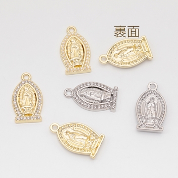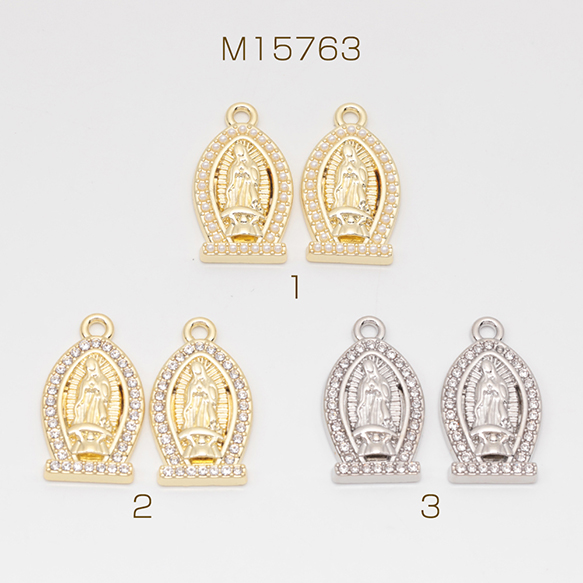 ラインストーンチャーム カメオ風 パール/ストーン付き 半面 メタルチャーム 約12.5×21.5mm(2ヶ)