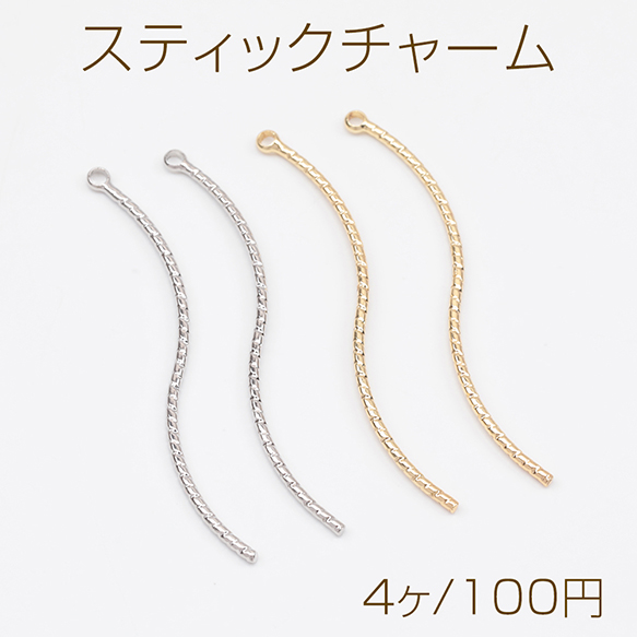 スティックチャーム ツイスト S字カーブ ウェーブ メタルチャーム 約0.8×37mm(4ヶ)
