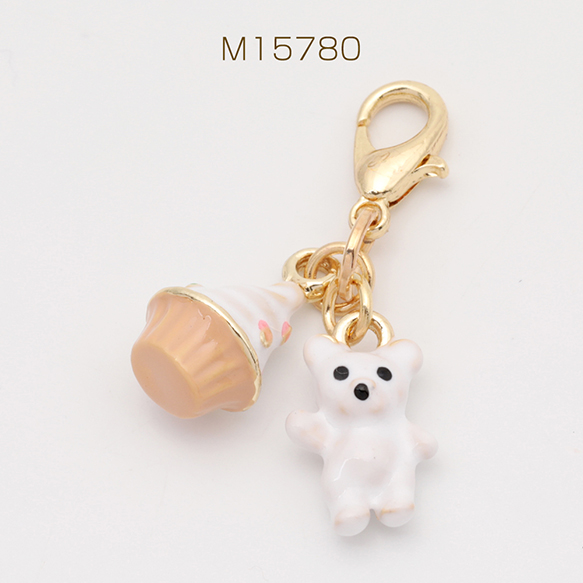 キーホルダー 可愛い カップケーキ テディベア 2個付き エポチャーム付き カニカンキーホルダー(1ヶ)