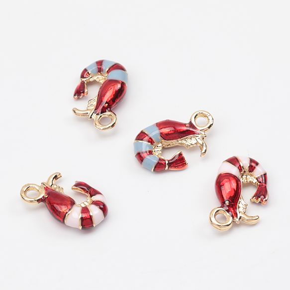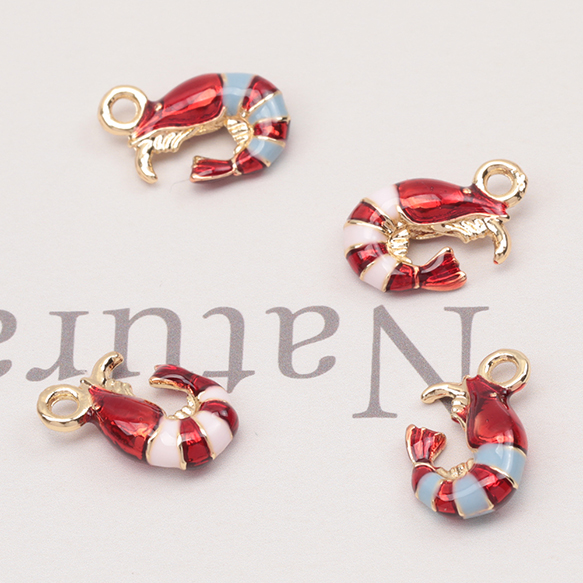 エポチャーム 海老 エビ 海 魚介 海の幸 ミニチュア メタルチャーム 約7×12mm(4ヶ)