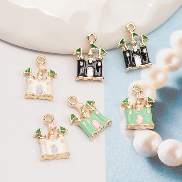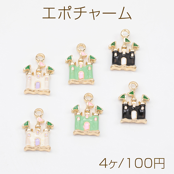 エポチャーム お城 キャッスル 洋風 洋館 ミニチュア 建物チャーム メタルチャーム 約10.5×15mm(4ヶ)