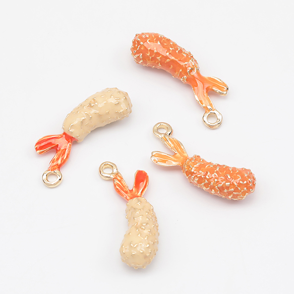 エポチャーム エビフライ 海老 揚げ物 ミニチュア 食べ物チャーム メタルチャーム 約5×21mm(4ヶ)