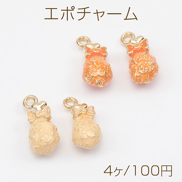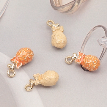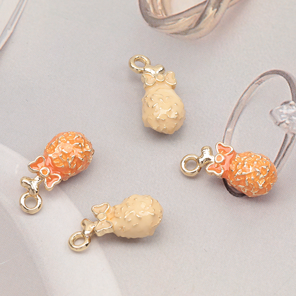 エポチャーム リボン付き フライドチキン とり肉 ミニチュア 食べ物チャーム メタルチャーム 約6×14.5mm(4ヶ)