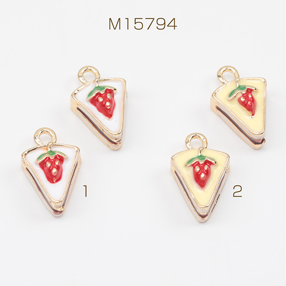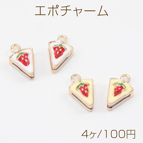 エポチャーム いちごのショートケーキ スイーツ ミニチュア 食べ物チャーム メタルチャーム 約8×13mm(4ヶ)