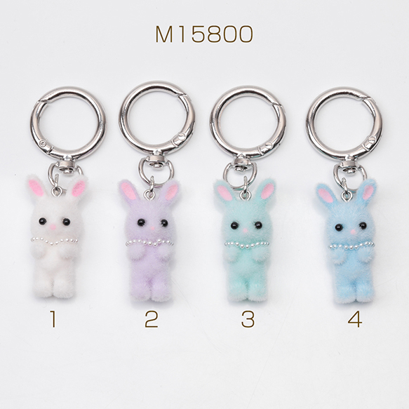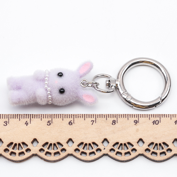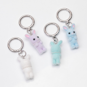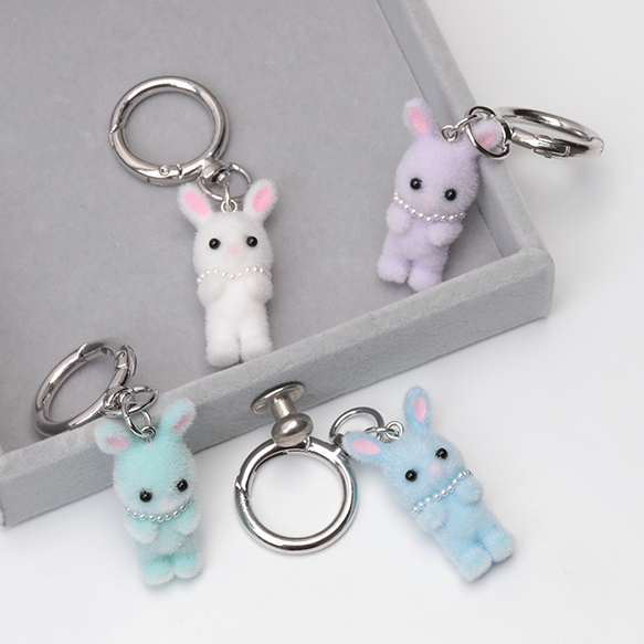 キーホルダー ウサギ うさぎ 兎 キュート ネックレス付きフロッキーチャーム カラビナ バッグチャーム(1ヶ)