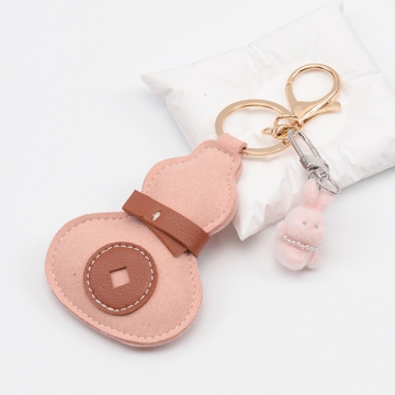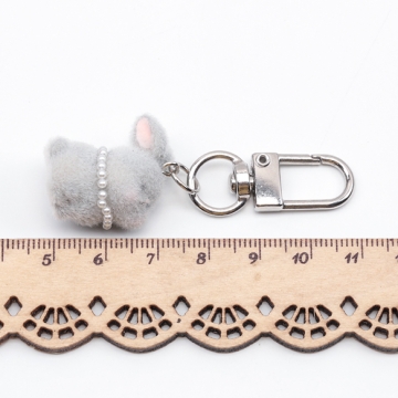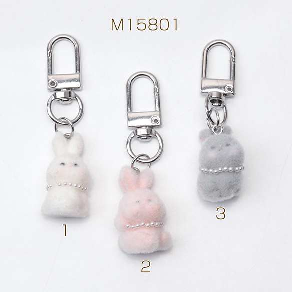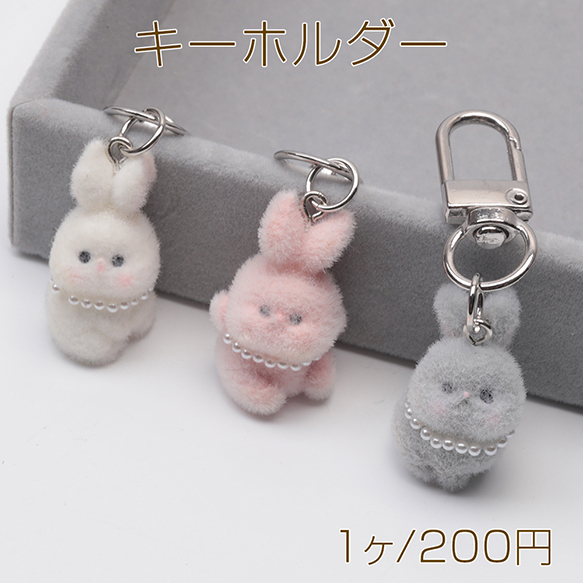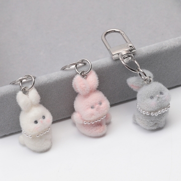 キーホルダー まんまるウサギ うさぎ 兎 キュート ネックレス付きフロッキーチャーム カラビナ バッグチャーム(1ヶ)