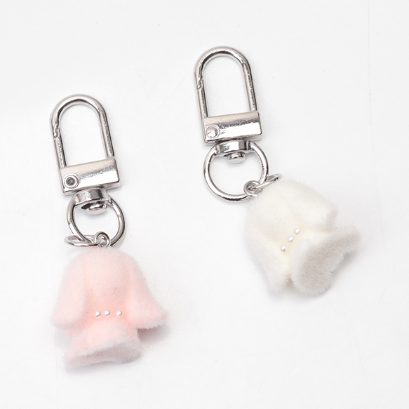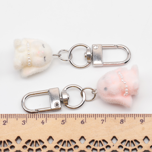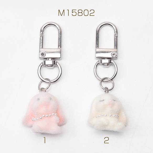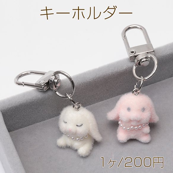 キーホルダー たれ耳ウサギ うさぎ 兎 キュート ネックレス付きフロッキーチャーム カラビナ バッグチャーム(1ヶ)