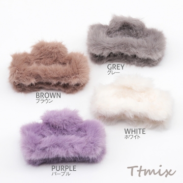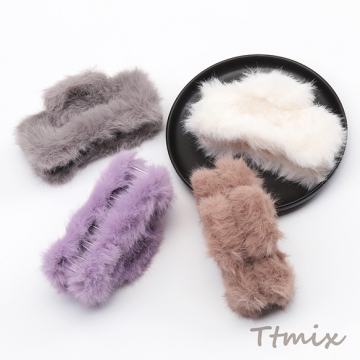 バンスクリップ ふわふわ スクエア型 秋冬用 おしゃれ 可愛い 髪留め ヘアアレンジ ヘアアクセサリー 約5×11cm(1ヶ)