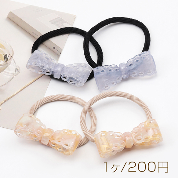 ヘアゴム 韓国風 アセチ樹脂 つやつやリボン ポニーテール 髪留め ヘアアレンジ ヘアアクセサリー 約5×6cm(1ヶ)