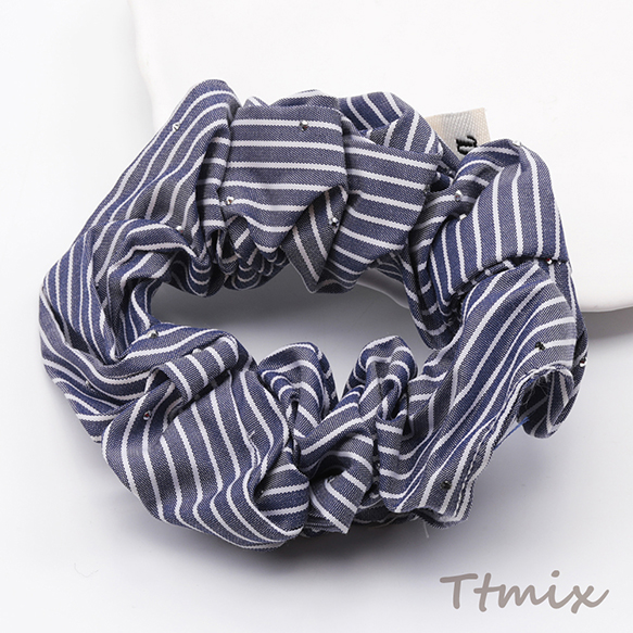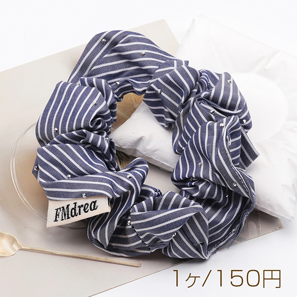 シュシュ 爽やか ブルー 横ストライプ ヘアアレンジ ヘアゴム ヘアアクセサリー 約9cm(1ヶ)