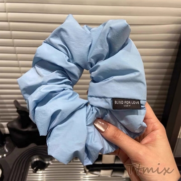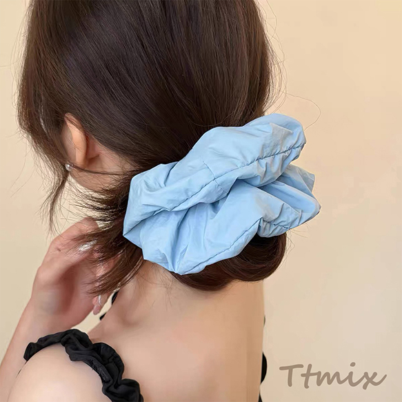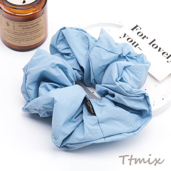 シュシュ 大きめ シンプルでも存在感◎ ブルー 無地 髪留め ヘアアクセサリー(1ヶ)