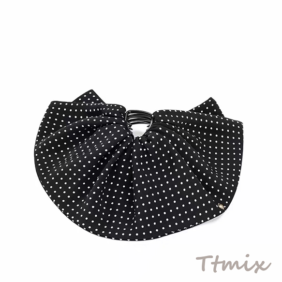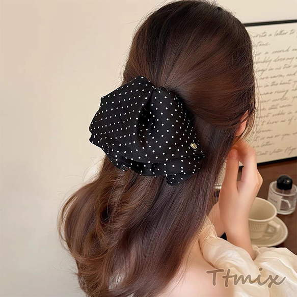 ヘアクリップ 大きめフリル ドット模様 存在感◎ ブラック 髪留め ヘアアクセサリー(1ヶ)