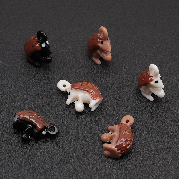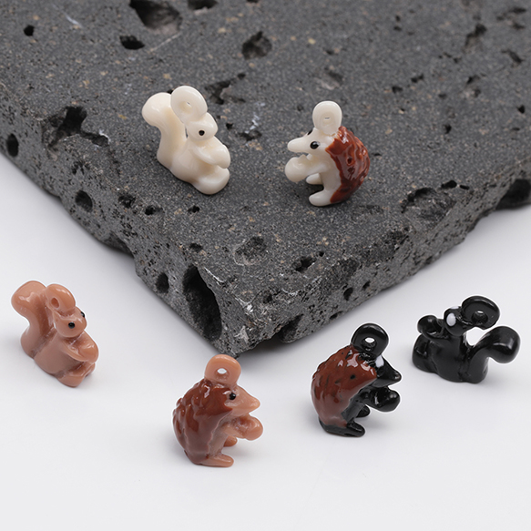 樹脂チャーム ハリネズミ リス 立体 アニマル 動物チャーム 全6種(4ヶ)