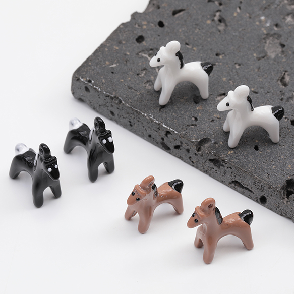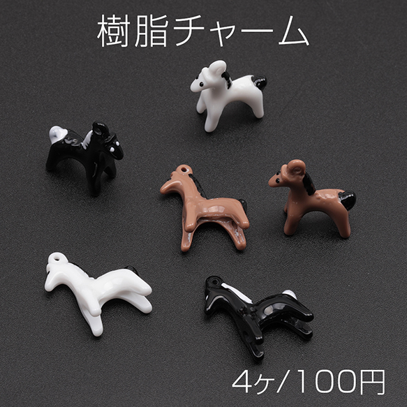 樹脂チャーム ウマ 馬 立体 アニマル 動物チャーム 馬チャーム 約18×20mm(4ヶ)