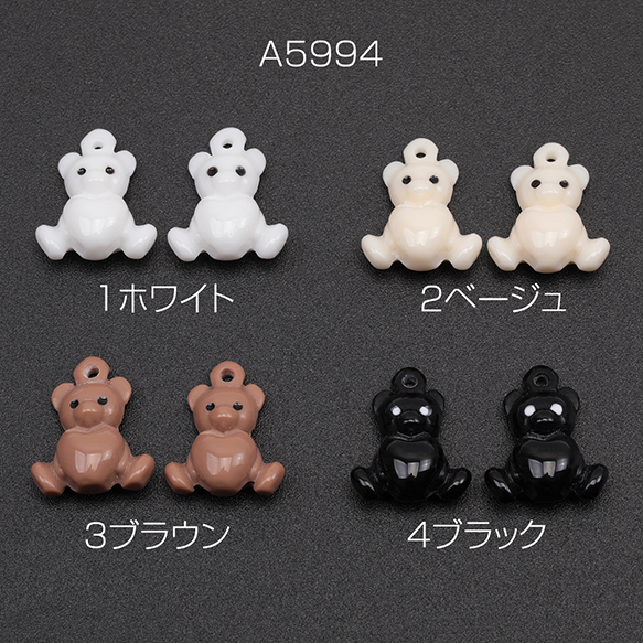樹脂チャーム ハート クマ テディベア 熊 立体 アニマル 動物チャーム くまチャーム 約12×15mm(4ヶ)