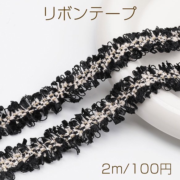 リボンテープ ツイード レース ブラック おしゃれ エレガント 飾り 手芸材料 幅約2cm(2m)